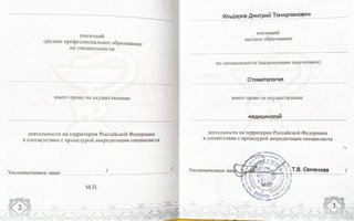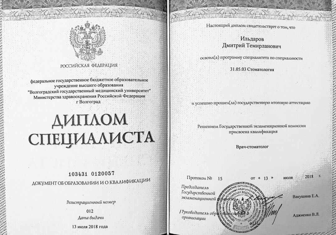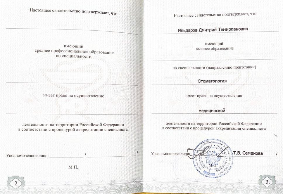 Места работы врача Дмитрия Темирлановича Ильдарова