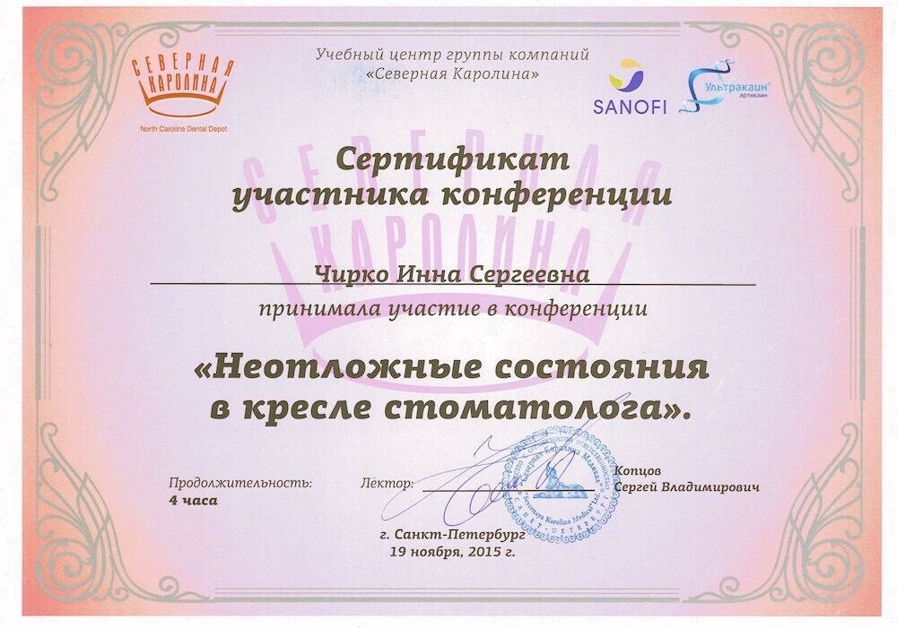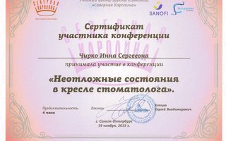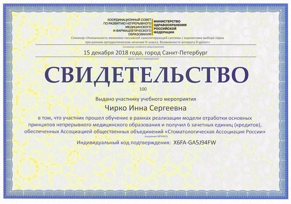 2018 — Участник научно-практической конференции "Современная детская стоматология и ортодонтия"