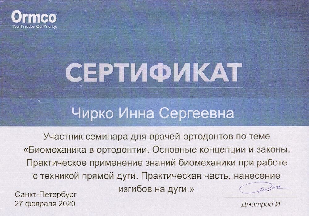 - На чем специализируется Чирко Инна Сергеевна?
