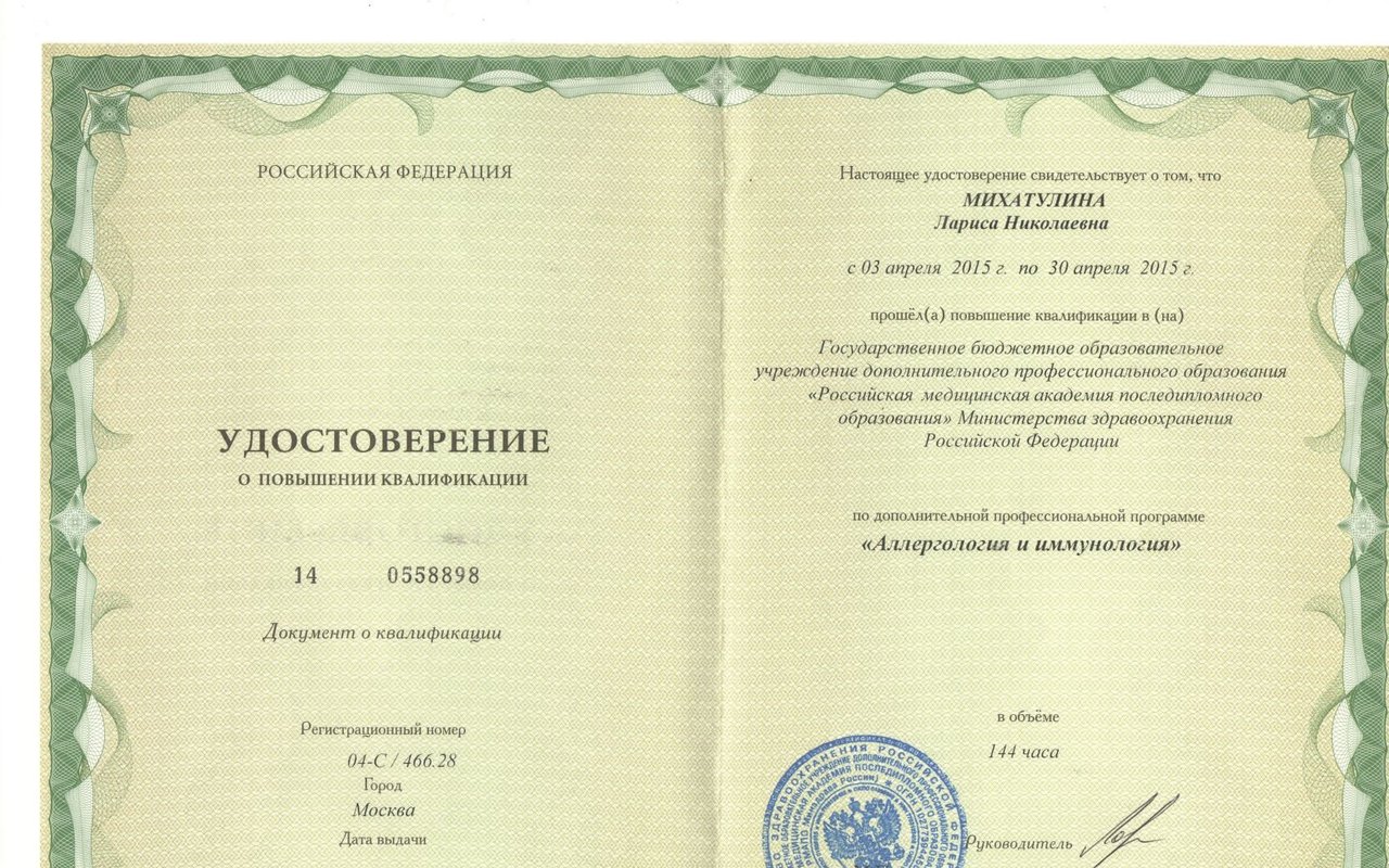 2005, 2010, 2015 — Аллергология и иммунология (РМАПО МЗ РФ г.Москва)