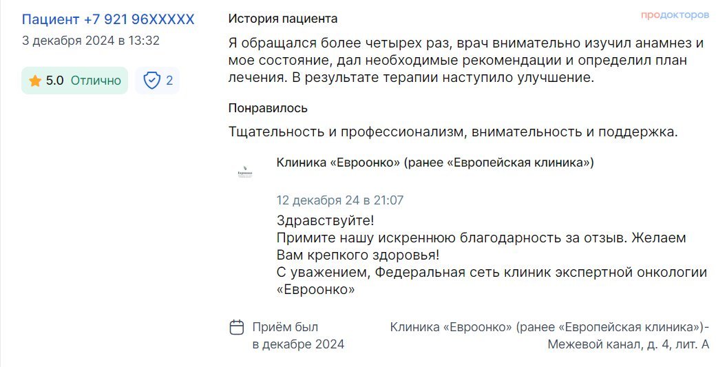 Максим Александрович Астраханцев — опытный и внимательный онколог с десятилетним стажем. Он отлично подходит к каждому случаю, поддерживает пациентов и находит индивидуальные решения. Пациенты ценят его профессионализм, заботу и тщательность в обследовании и назначении лечения.