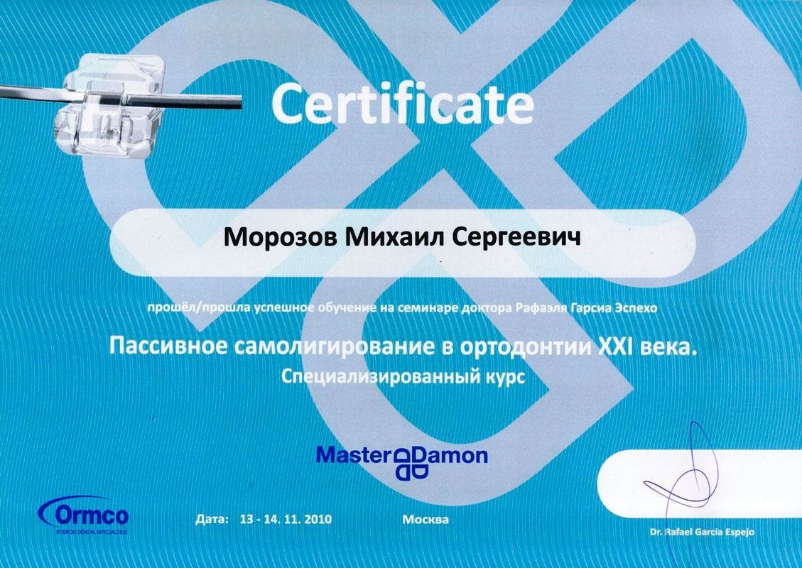 Кроме врачебной работы Михаил Сергеевич успешно руководит командой из 3-х преподающих ортодонтов-кураторов, 4-х ортодонтов-экспертов и курирует 10-ти практикующих ортодонтов в клинической ординатуре на базе клиники. Этот самый рекомендуемый в профессиональной среде формат продвинутого обучения врачей-ортодонтов для повышения квалификации и мануальных навыков. Более 40 из нескольких сотен выпускников клиники проходили обучение в течение 2-х лет лично у М.С. Морозова и теперь успешно практикуют в разных городах России.