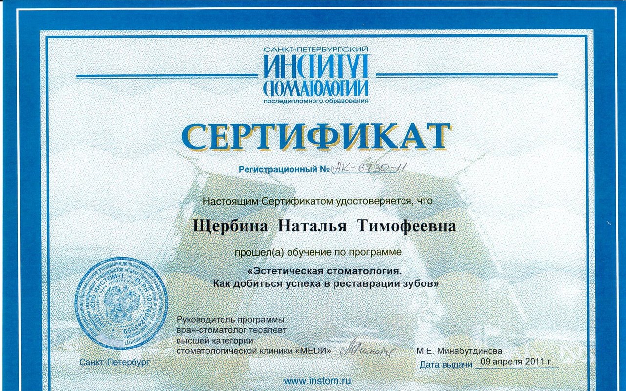 2003 — Санкт-Петербургский государственный медицинский университет им. акад. И.П. Павлова (актуальные вопросы терапевтической стоматологии)