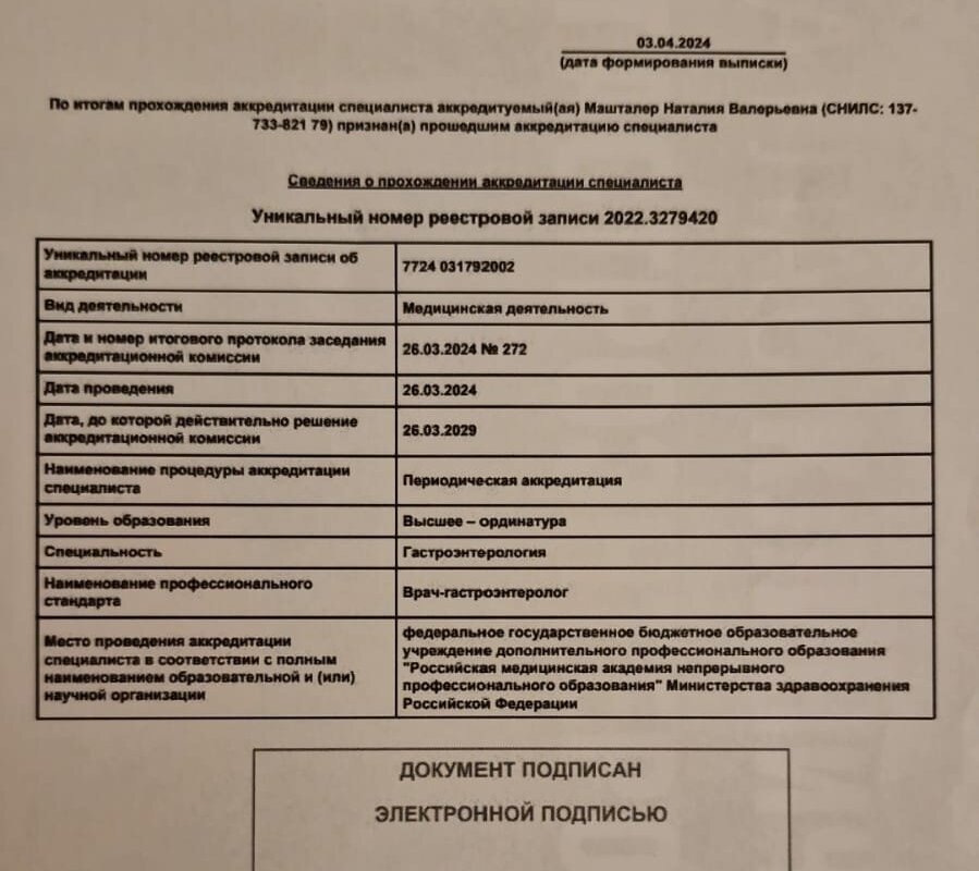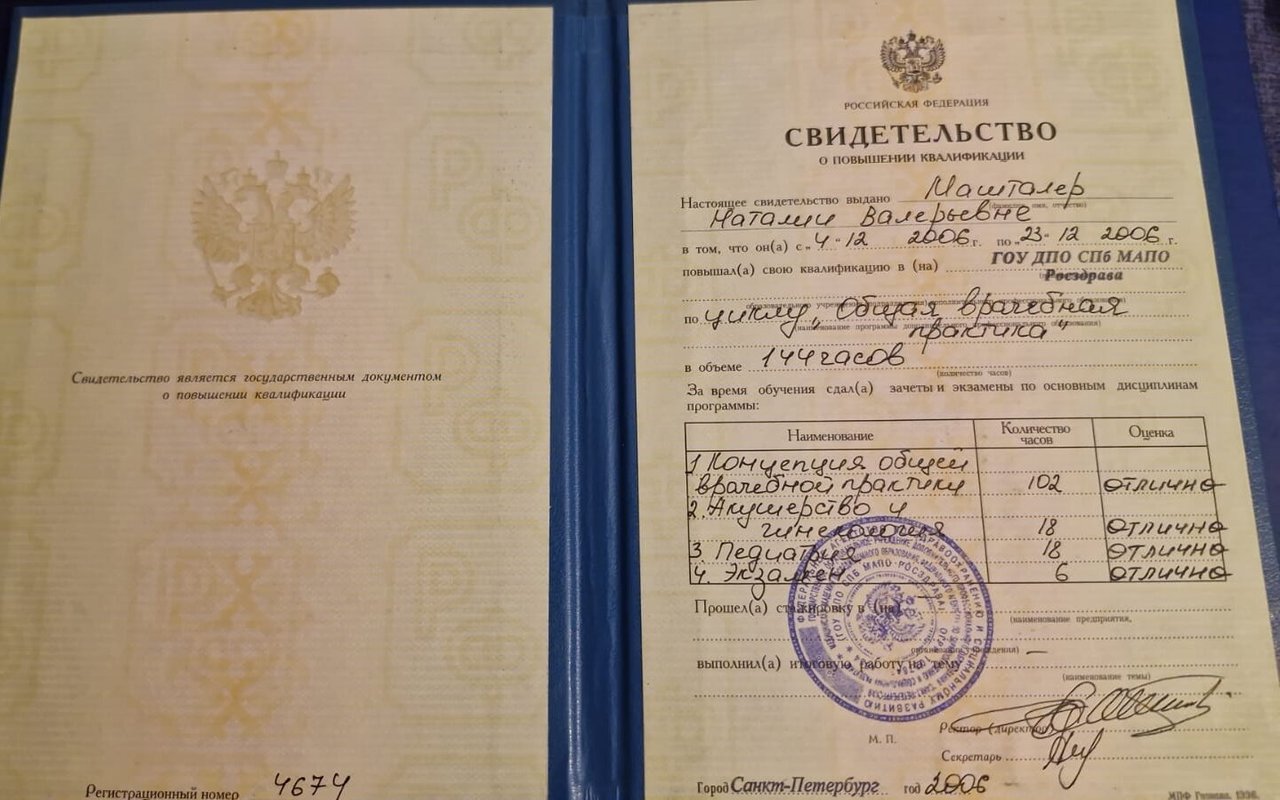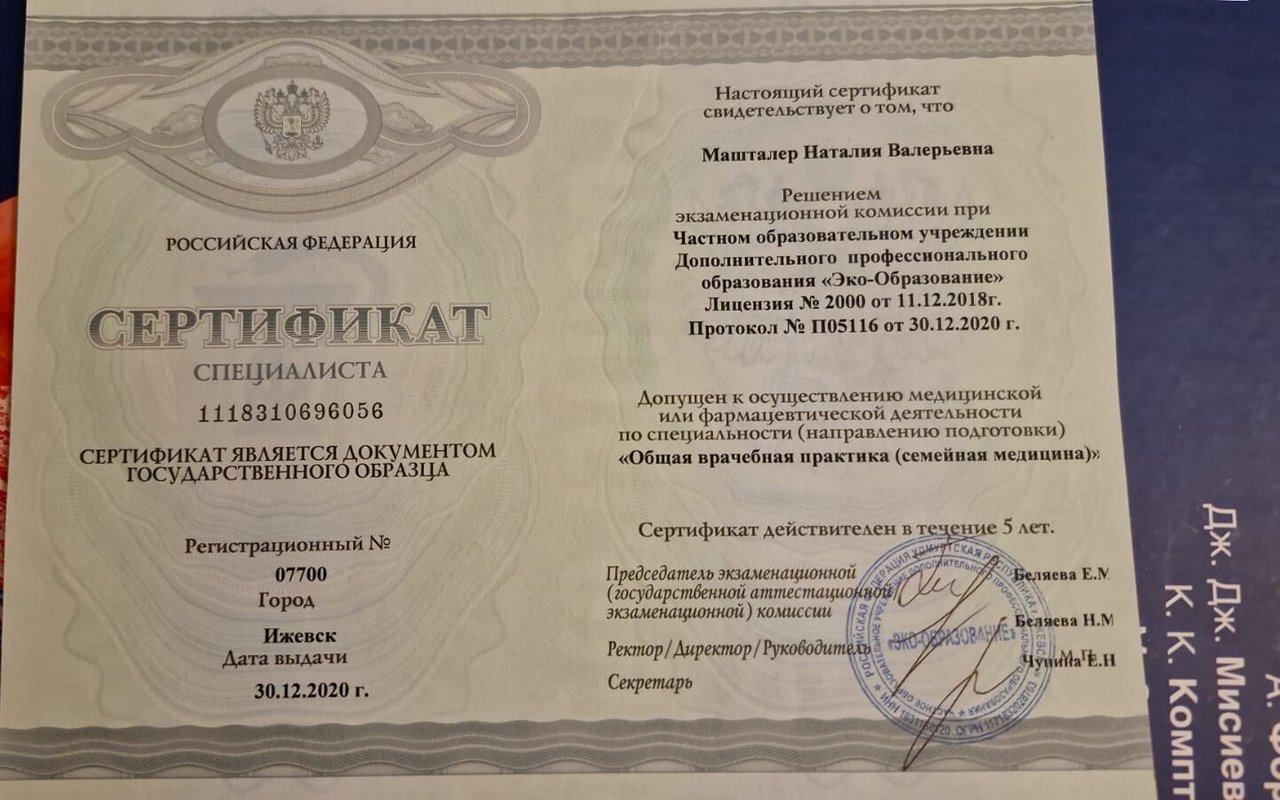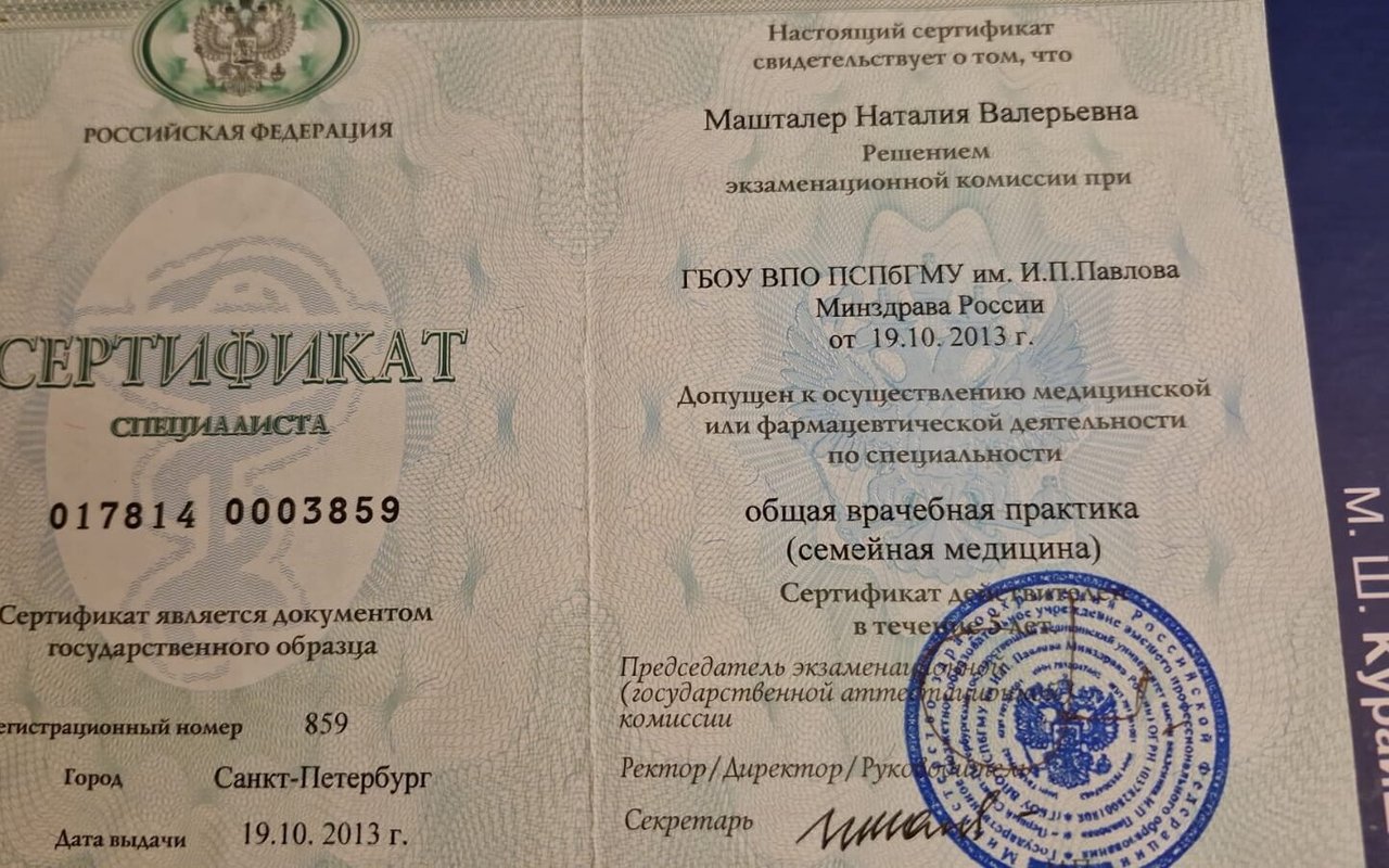 - Есть ли возможность ознакомиться с сертификатами Машталер Наталии Валерьевны?