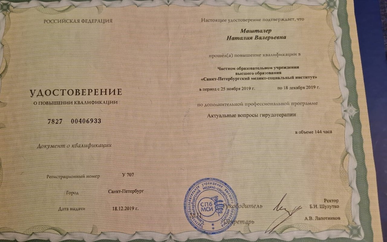 2019 — Санкт-Петербургский медико-социальный институт "Актуальные вопросы гирудотерапии"