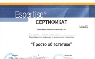 Дипломированный участник семинаров, мастер-классов и конференций по темам: «Профессиональная гигиена полости рта в комплексной реабилитации стоматологического пациента»; «Неотложная помощь при критических состояниях у пациентов в амбулаторной стоматологической практике»; «Пародонтальная терапия»; «Неинвазивные методики устранения дисколоритов зубов»; «Аспекты реставрации фронтальной и жевательной группы зубов»; Успешно прошел обучение по работе с программами Vatech Ez3D2009/Planmeca Romexis Viewer в сети независимых рентгенодиагностических центров «Пикассо»; «Микропротезирование»; «Реставрация зубов с использованием современных пломбировочных материалов»; «Восстановление анатомической формы зубов в эстетической реставрации»; «Минимально-инвазивный подход в эндодонтии. Новая научная концепция предсказуемого лечения»; «Направленная регенерация тканей в пародонтологии»; «Терапевтические аспекты лечения травмы зубов»; «Успехи и неудачи в эндодонтии. Нехирургическое и хирургическое лечение, основные критерии выбора. Прогнозирование сложных случаев. Перелечивание»; «Функции и эстетика — основы современной стоматологии»; «Профилактика неотложных состояний при проведении местной анестезии в стоматологии. Причины развития неотложных состояний в стоматологии»