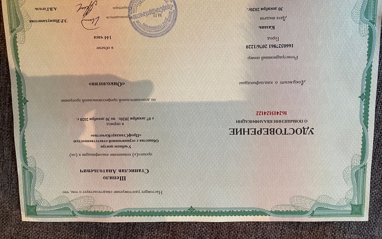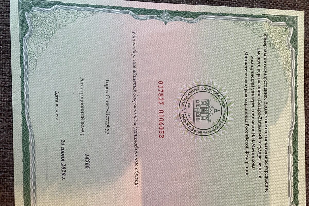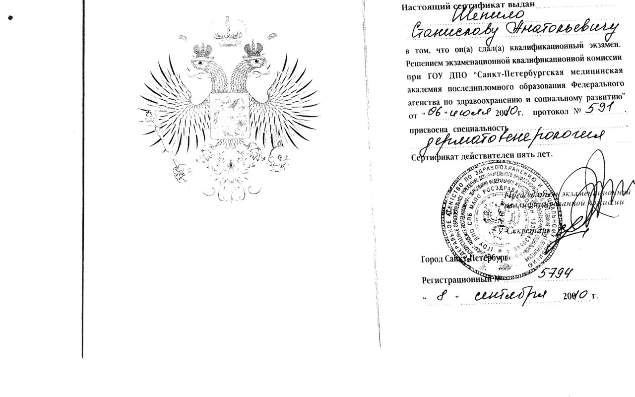 2011 — Северо-Западный государственный медицинский университет им. И.И. Мечникова (мезотерапия в дерматокосметологии и эстетической медицине)