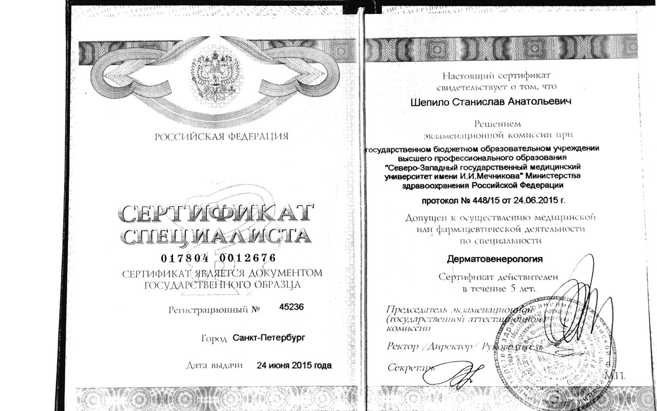- Есть ли у Шепило Станислава Анатольевича требуемые сертификаты?