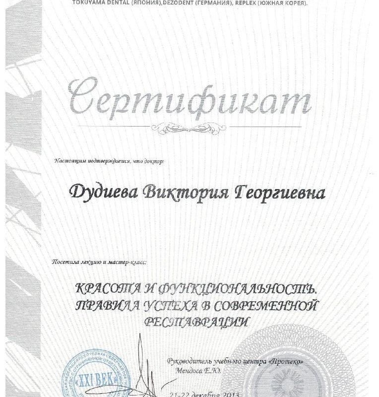 2012 — Ставропольский институт повышения квалификации «КарьераМедиФарм» (стоматология терапевтическая)