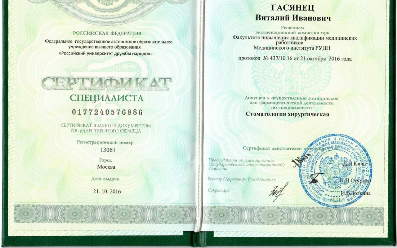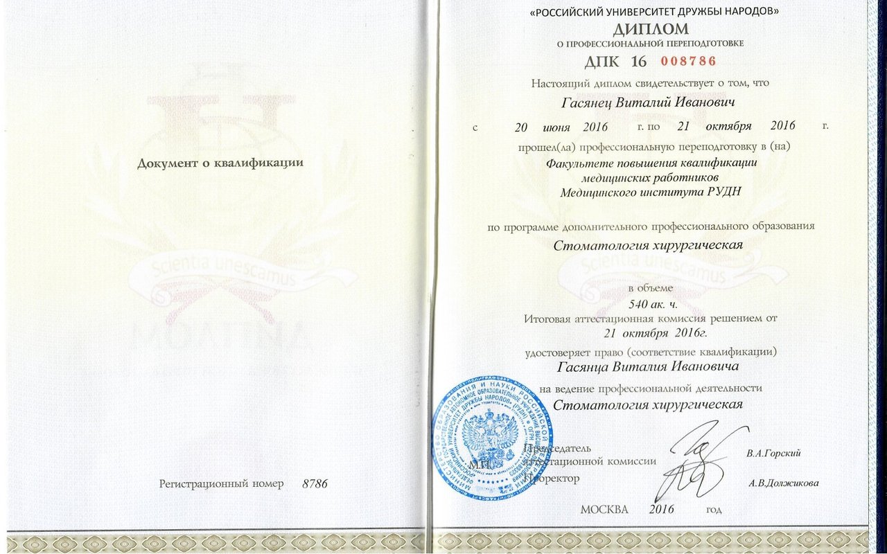 2011 — Российский университет дружбы народов им. П. Лумумбы (РУДН) (хирургия)