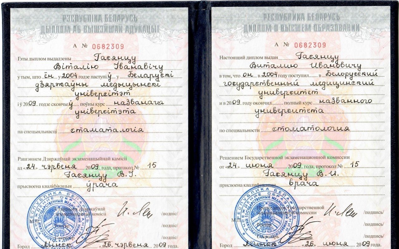 2009 — Белорусский государственный медицинский университет (стоматология)