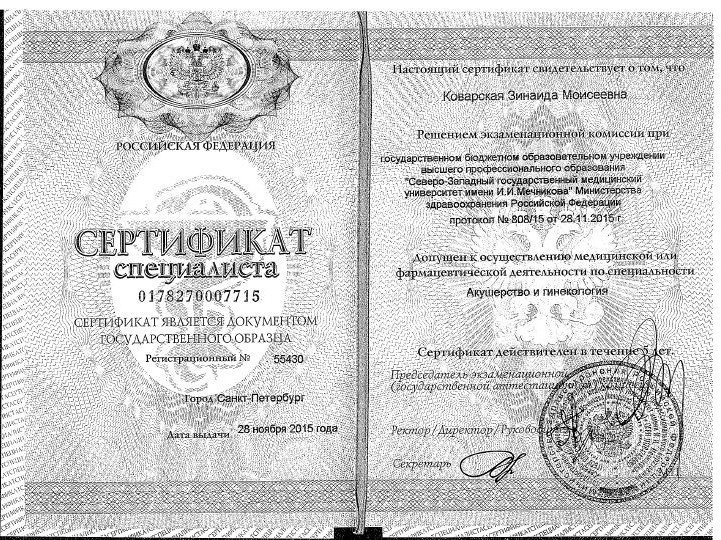 - Можно ли ознакомиться с сертификатами Коварской Зинаиды Моисеевны?