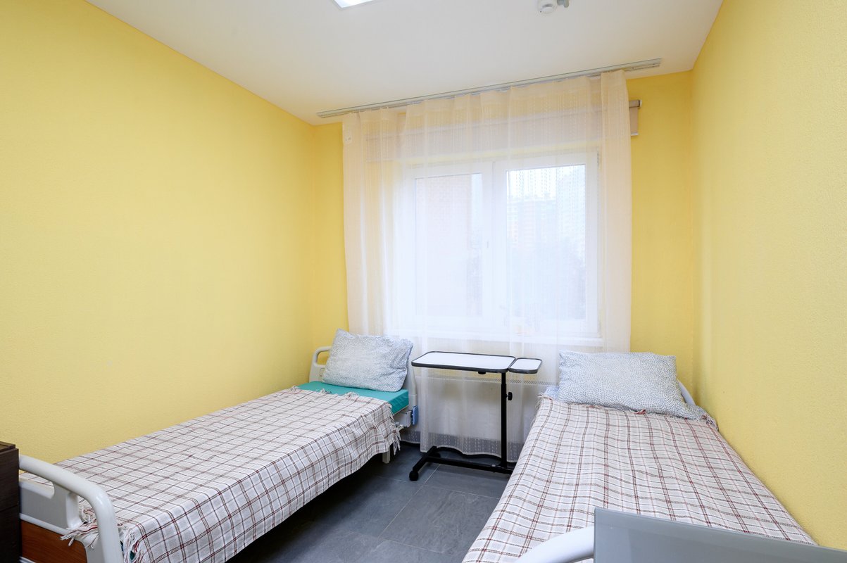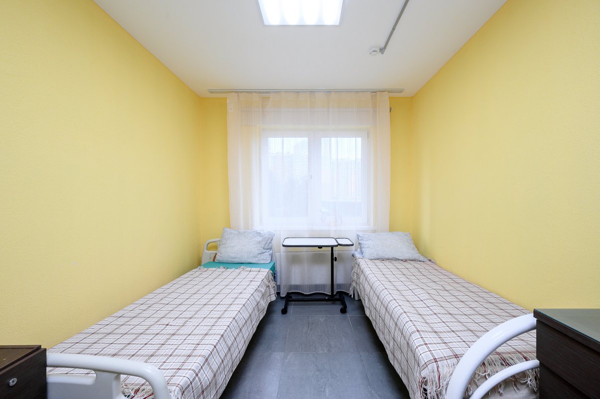 Размещение в номерах одно- и двухместное, питание составлено с учетом потребностей пожилых людей, а при необходимости возможно ее измельчение с помощью блендера. В круглосуточном режиме постояльцам доступен контроль состояния здоровья и выдача лекарственных средств по назначению врача.
