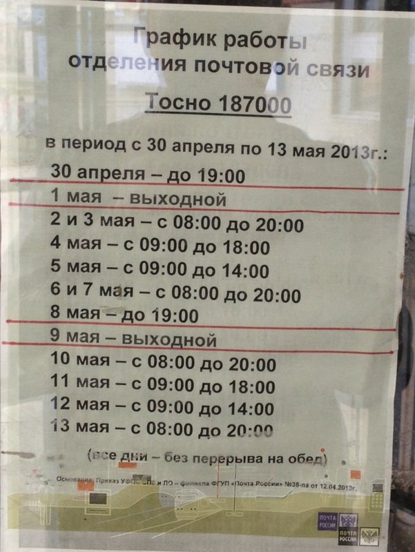 Отзывы об отделение 187000 Почта России на проспекте Ленина в Тосно
