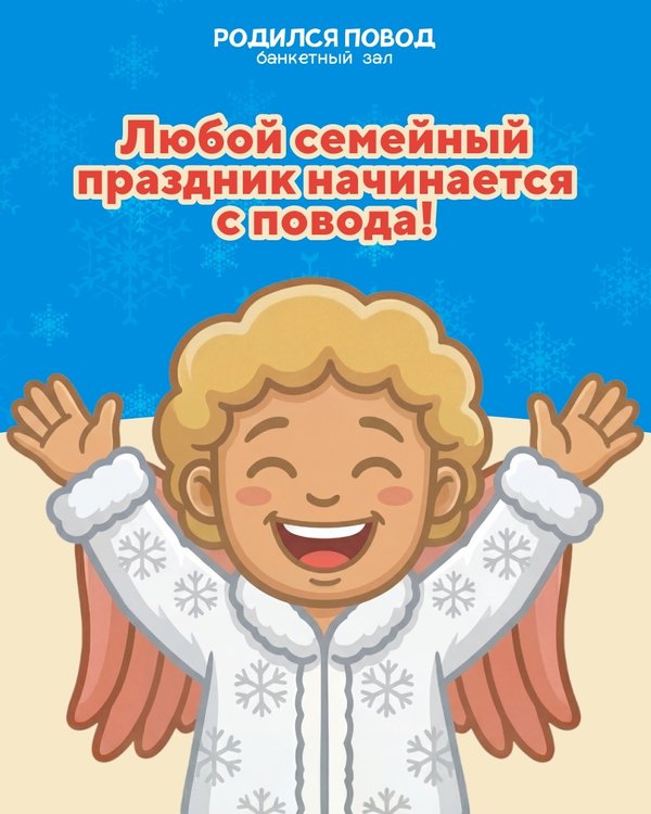 м — мамам и папам — бабушкам и дедушкам — и, конечно, нашим маленьким героям С наступающим 2026 годом! Пусть в нём будет больше: — поводов собираться — детского смеха — объятий — первых слов и первых шагов — и времени друг для друга А мы будем рядом, когда повод родился С любовью, ваш Банкетный зал «Родился Повод»