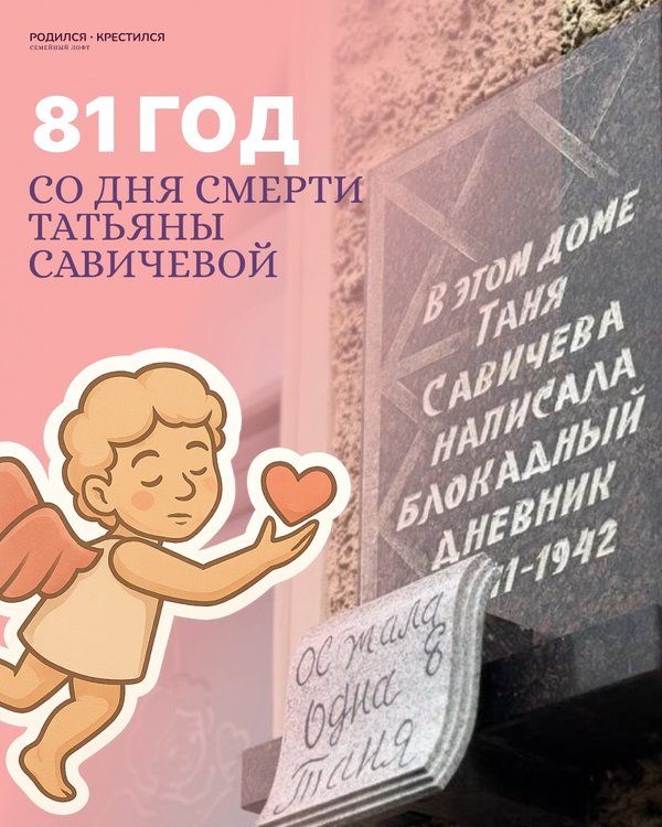 1 июля. Вспоминая Таню Савичеву Сегодня исполняется 81 год со дня смерти Тани Савичевой — девочки, чьи строки из блокадного дневника стали символом трагедии и мужества ленинградцев. «Умерли все. Осталась одна Таня». Она жила в этом доме, на 2-й линии Васильевского острова, 13. Сегодня здесь располагается наш семейный лофт «Родился — крестился». Мы ощущаем большую ответственность — жить и работать в пространстве, которое хранит такую боль и такую силу. У мемориальной доски на фасаде дома и сегодня неравнодушные люди оставляют цветы и конфеты… — Читать дальше