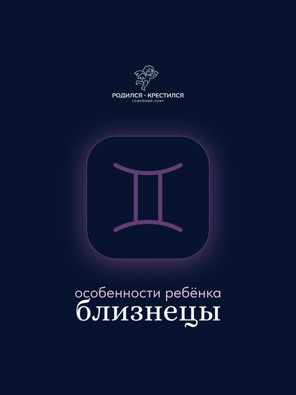 ужно движение, смена обстановки, новые впечатления. — Лёгкие на подъём. Они открыты к новому, быстро адаптируются, легко заводят друзей и любят быть в центре внимания. — С разносторонними интересами. Сегодня они хотят рисовать, завтра играть в конструктор, а послезавтра — собирать листья на прогулке. Как поддержать малыша-Близнеца? — Разговаривайте с ним чаще, даже если он ещё совсем кроха — он впитывает слова, как губка. — Поддерживайте интерес к обучению через игру: книги, аудиосказки, карточки, викторины. — Обеспечьте свободу движения и смену активности — это не капризы, а способ познания мира. — Не ругайте за непоседливость — для Близнецов это естественное состояние! Маленькие Близнецы — это дети, которые приносят в дом движение, разговоры, смех и нескончаемую жажду открытий. С ними точно не соскучишься! А у вас есть малыш-Близнецы? Сходится ли описание? Или, может, вы ждёте маленького Близнеца в ближайшее время? Расскажите нам Семейный лофт “Родился – крестился”