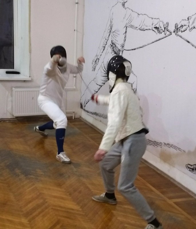 Лично мне нравится ещё то, что мы изучаем именно классическое фехтование, где есть техника, логика, динамика во время фехтовального боя, элементы азарта и непредсказуемости, а не просто «рубилово» с плеча. Словно в шахматной партии ты пытаешься просчитать в считанные доли секунды все ходы, движение соперника, его защиту и атаку во время укола, думаешь постоянно, проводишь не только физическую, но и интеллектуальную работу. В общем, это целый культ, идеология, где романтика превращается в действительность на ваших глазах, ибо вы сами становитесь её частью и её творцом. Буду рад увидеть новых единомышленников)