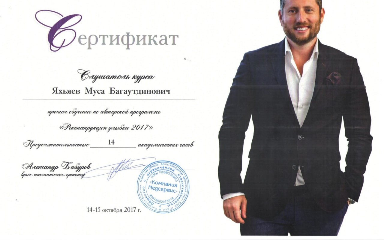 Яхьяев Муса Багаутдинович является стоматологом-ортопедом, а также работает в сфере имплантологии и стоматологической хирургии. Вы можете записаться к Мусе Яхьяеву, если вам нужно восстановить утраченный зуб или если один из зубов находится в таком состоянии, что с помощью обычной пломбы его не спасти. Зубы перед протезированием обязательно должны быть санированы, так что перед обращением к ортопеду лучше посетить стоматолога-терапевта.... Показать еще