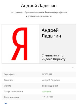 - Какое ведущее направление деятельности Ладыгина Андрея?