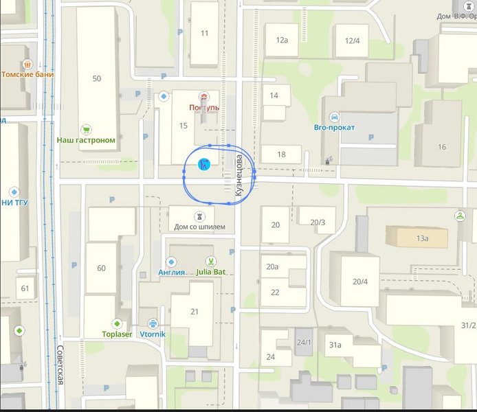 4. От Городского сада по ул. Советская до ул. Кузнецова, д.15 — 570 метров, 7 минут