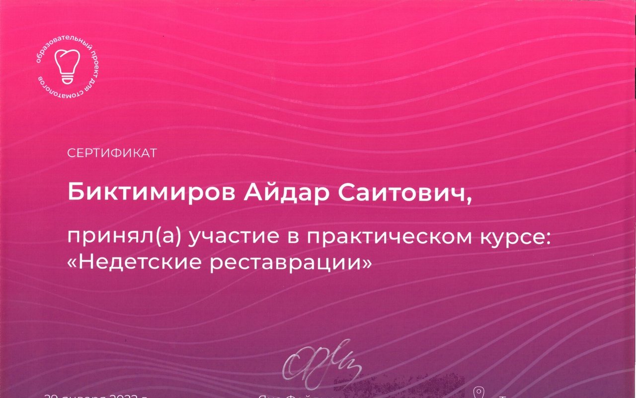СтоматологСочетаю практику в клинике с преподаванием в вузе. Это позволяет мне предлагать вам не только проверенные, но и самые современные методы лечения. Глубже понимаю вашу ситуацию — от кариеса до сложного протезирования — чтобы найти решение, которое будет идеально работать именно для вас.