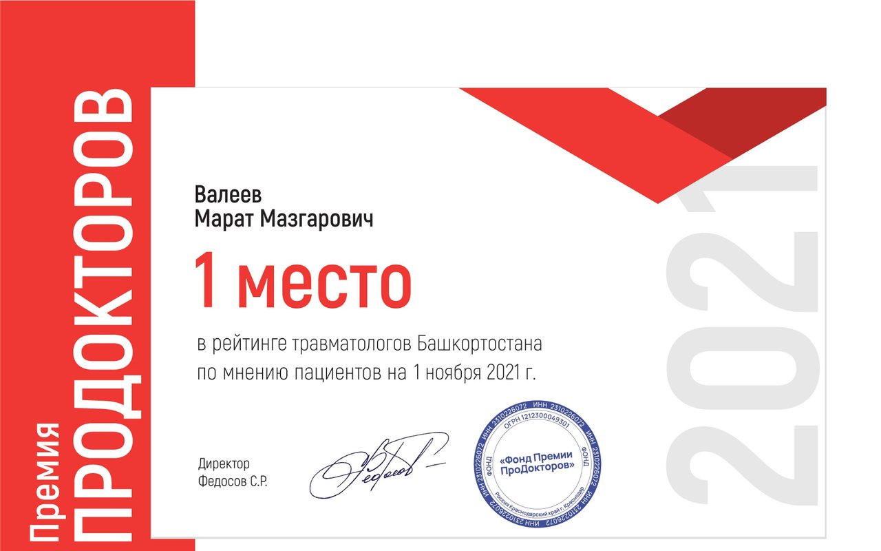 Врач травматолог-ортопед, кистевой хирургЗаслуженный врач РБ, учредитель Общества кистевых хирургов России "Кистевая группа", доктор медицинских наук, профессор Кафедры "Травматологии и ортопедии" БГМУ, обладатель "Золотого скальпеля", Лучший врач травматолог России 2021, ТОП-3 врач ортопед России 2022 по версии портала "Продокторов"