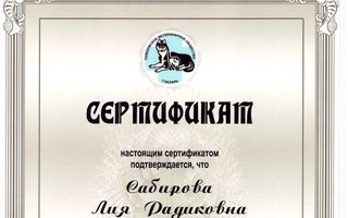 2017г прошла курс практических и лекционных занятий по теме: "Стоматология кошек"