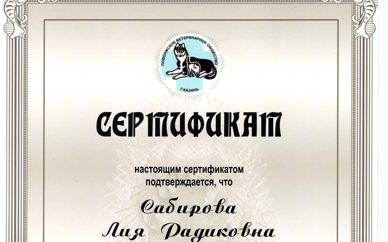 2019г получила Сертификат компетентности специалиста-эксперта в области ветеринарной стоматологии.... Показать еще