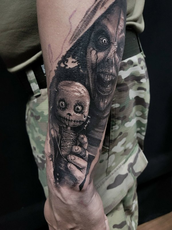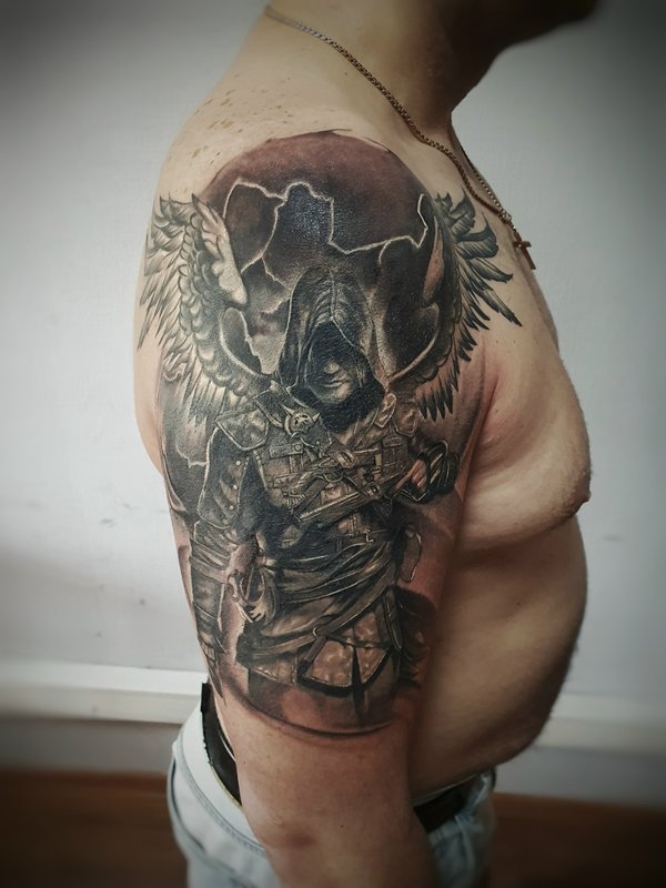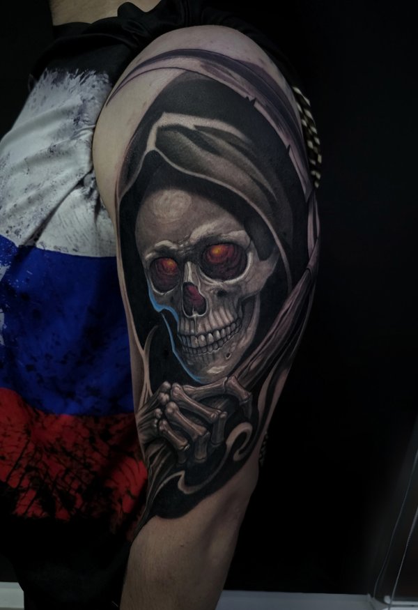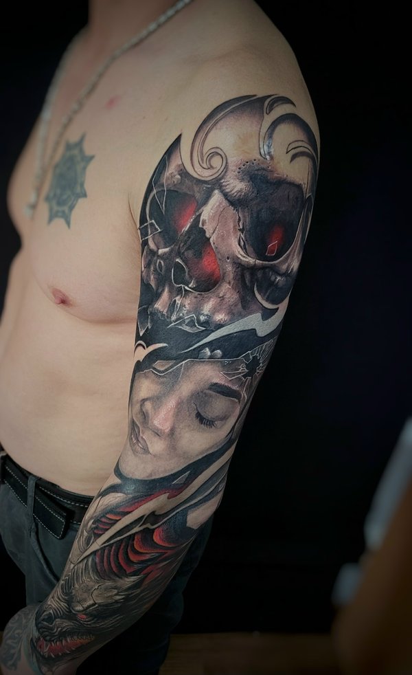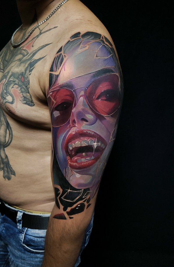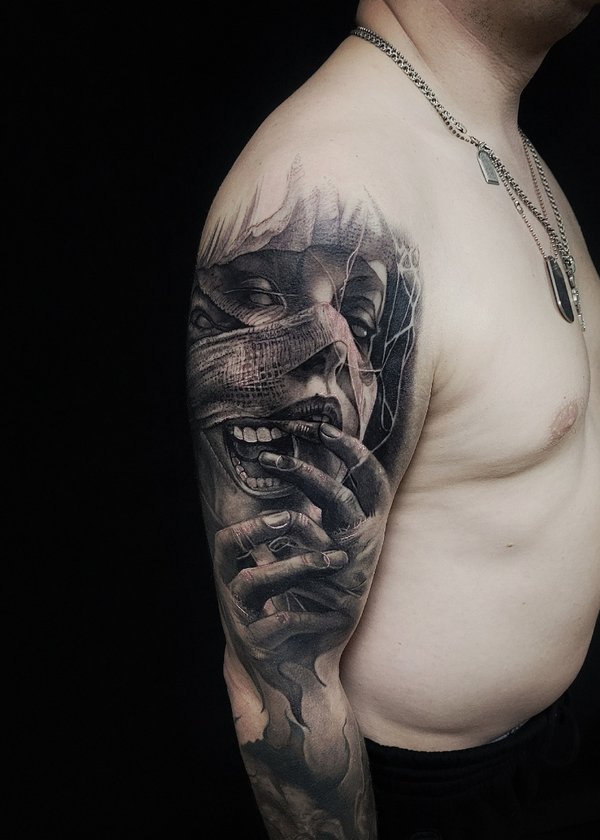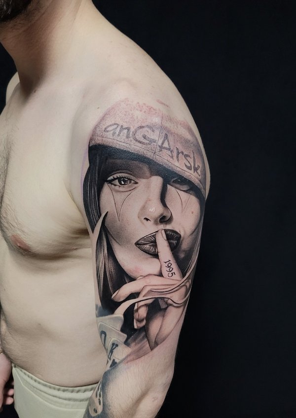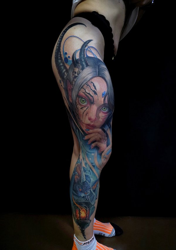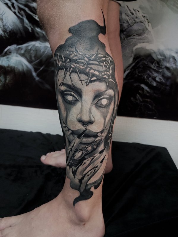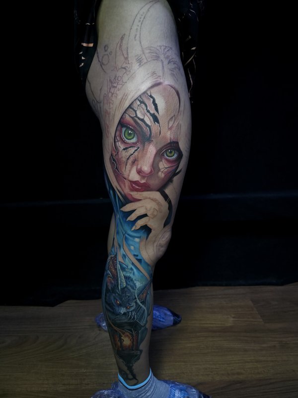 Кто играл? Вообще как получилось с этой тату: Пришла девушка, сказала нужна тату, вот это лицо одно которое на фото, но мы малость поколдовали собрали проект по игре. Планировали сделать за сеанс но, у неё было повышенное давление, она была на антибиотиках, сукровицы было очень много, поэтому перенесли сеанс. Низ зажил не очень хорошо, поэтому будет коррекция. Мораль: Готовьтесь к сеансу за пару дней хотя-бы, не ходите больные на сеанс. А да, с меня ГРАМОТЕЙ ещё тот!!!
