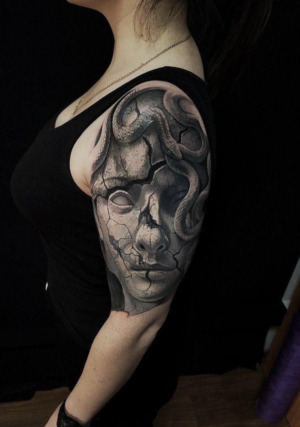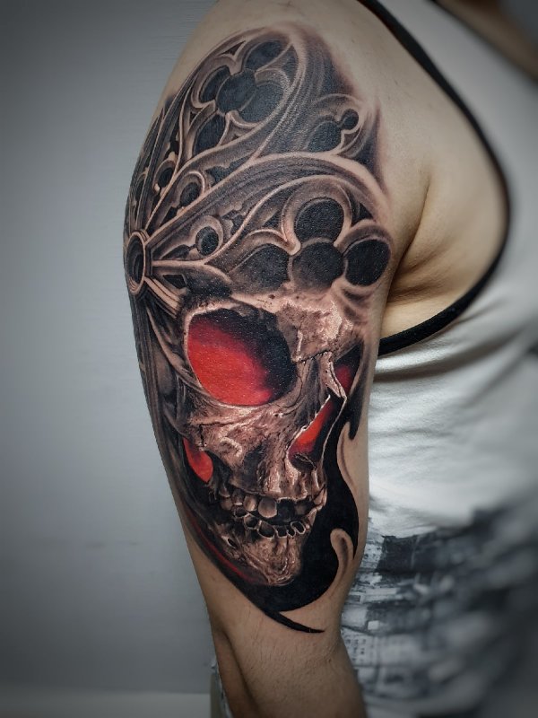 Пришла девушка, сказала нужна тату, вот это лицо одно которое на фото, но мы малость поколдовали собрали проект по игре.