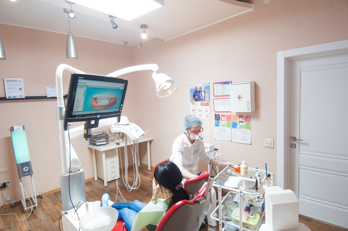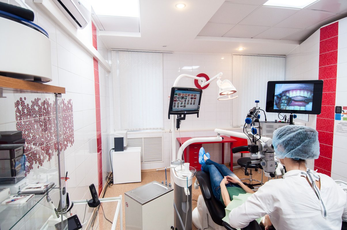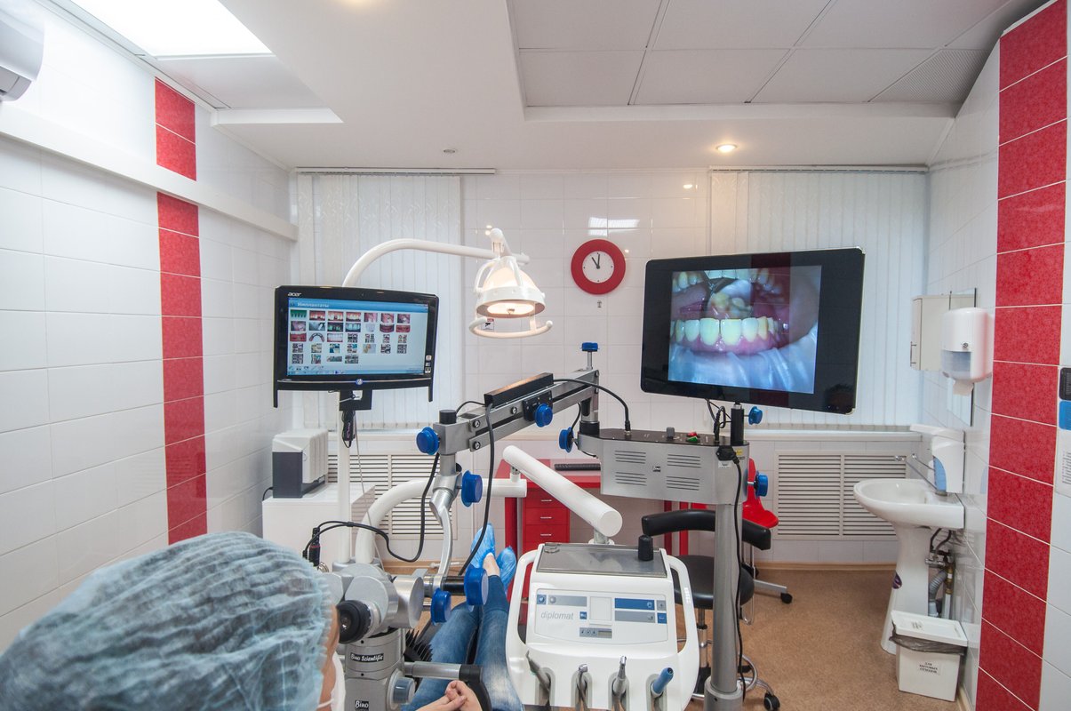 Только после этих манипуляций приступили к лечению зуба, с которым и обратились. Само лечение зуба заняло тоже более часа. А всего то нужно было удалить нерв с переднего резца 2*2. Поразила очень высокая тщательность выполнения работы. Уровень выполнения работ тоже находится на гораздо более высоком уровне по сравнению с даже с платными услугами в городской зубной клинике. Особо отмечу, врач старается как можно качественнее выполнить даже на первый взгляд простую работу. Для неё нет в работе мелочей. Тщательность и ещё раз тщательность. О внимательности к пациенту конечно и речи не идет, здесь это на высшем уровне. Всё рассказывают, и показывают, что делают и для чего. Маленькие, миниатюрные камеры передают видео изображение на монитор. И пациент может сам наблюдать за ходом выполнения работы. Отвечают по ходу на все вопросы, в том числе и провокационные вопросы. Никакой раздражительности при этом не выказывают.