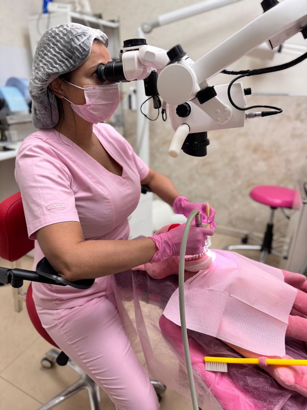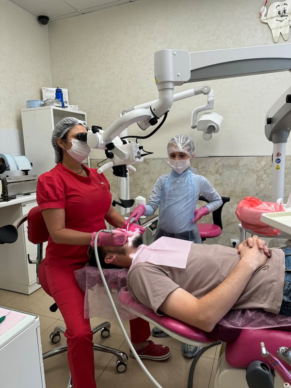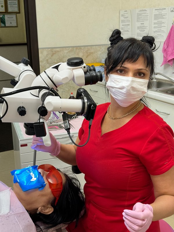 Во время лечения можно смотреть телевизор с научными программами, что отвлекает от пооцесса лечения зубов. Лечение проводят под микроскопом.