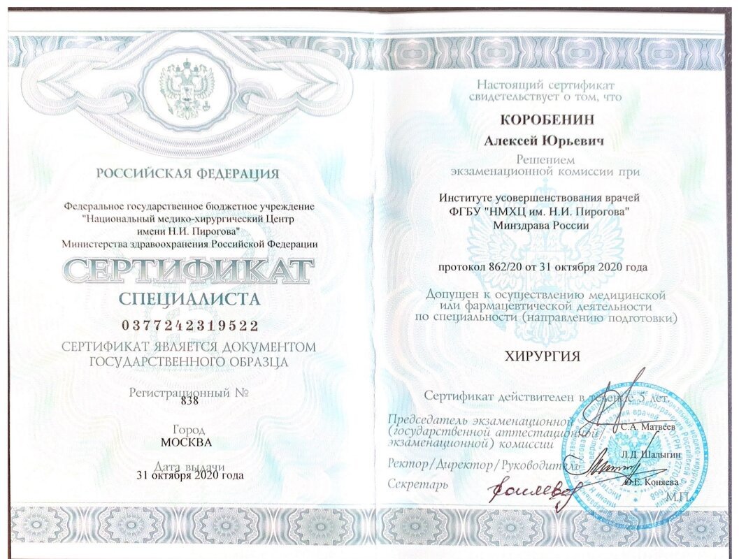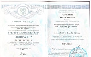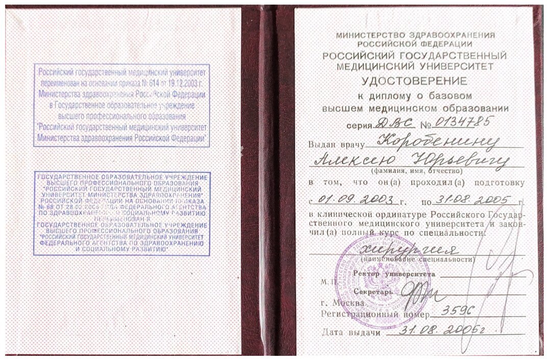 2015 — Российский национальный исследовательский медицинский университет имени Н.И. Пирогова (хирургия)