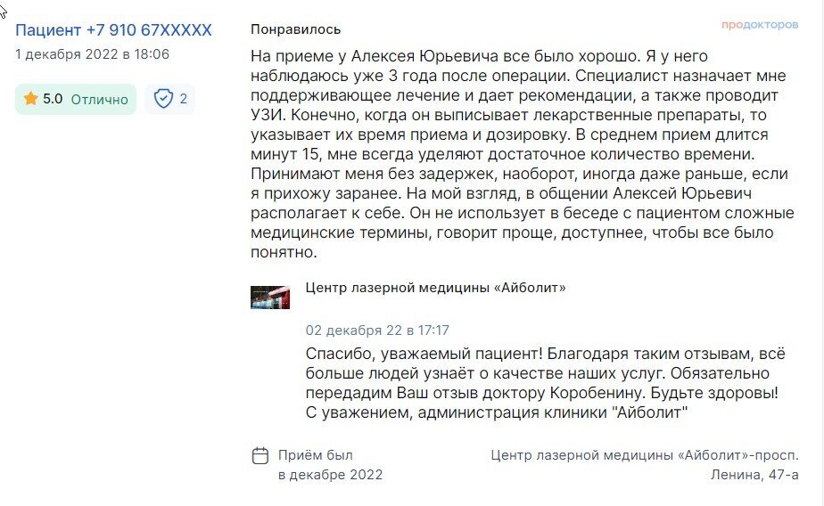 Отзывы о враче Алексее Юрьевиче Коробенине