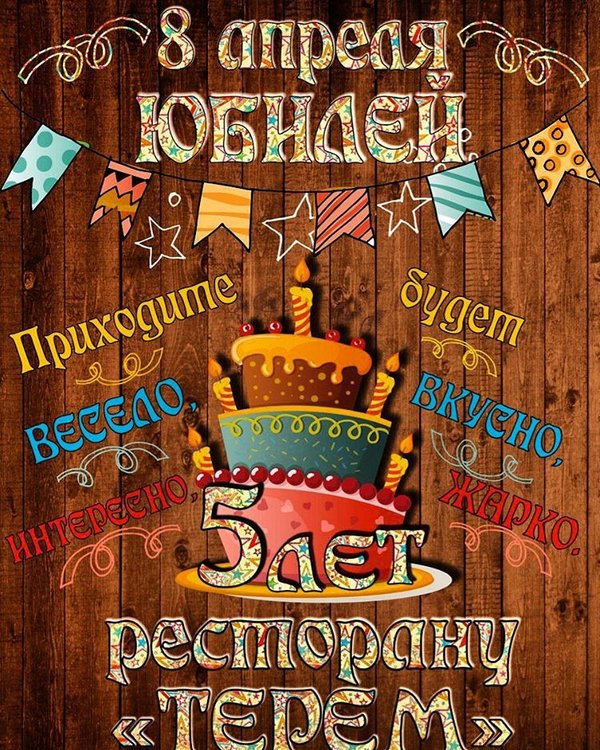 Приглашаем Вас отметить вместе с нами наш первый юбилей! 5 лет со дня открытия ресторана Терем! Мы будем радовать Вас как всегда самой вкусной кухней и самым лучшим гостеприимством, ведущий вечера и наш заводила @klimanson82.