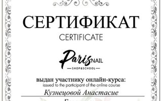 Кузнецова Анастасия как бьюти-специалист сделает все возможное, чтобы вы стали ее частым клиентом. Она предлагает такие услуги, как свадебный маникюр, укрепление и покрытие биогелем, аквариумный дизайн, коррекция и снятие наращивания, наращивание ногтей гелем, а также на типсах и формах, френч-наращивание, наращивание ногтей на ногах, спа-маникюр, спа-педикюр, аппаратный, детский, классический, мужской, французский маникюр, гелевый, аппаратный, детский, классический, комбинированный, мужской, французский педикюр, массаж стоп, рук и парафинотерапия.... Показать еще