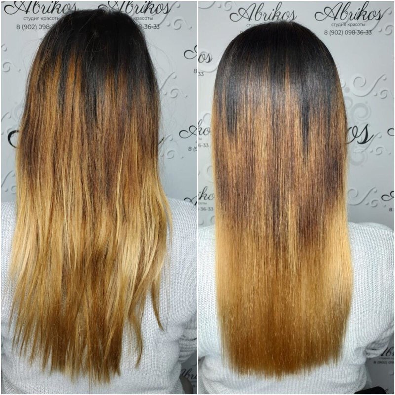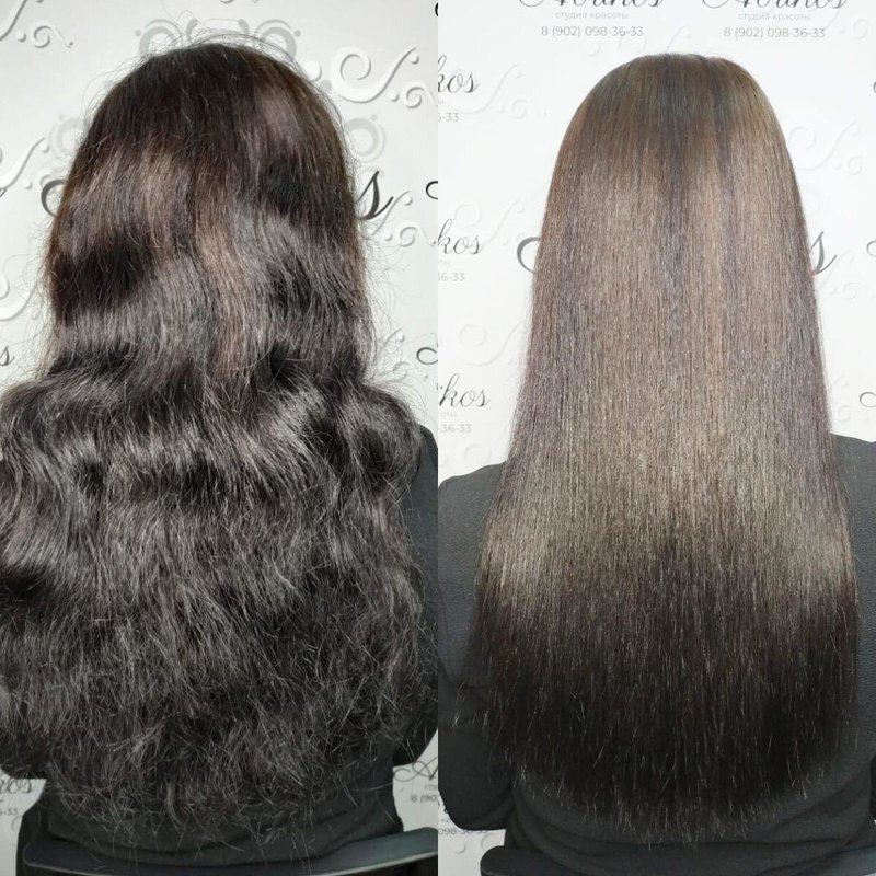 — Кератиновое выпрямление волос и нанопластику, полировку волос