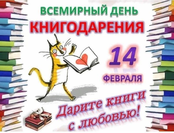 14 февраля отмечается один из самых молодых праздников – Международный день дарения книги. Главная идея Международного дня книгодарения — показать, что по-прежнему книга — лучший подарок и не теряет своей ценности даже в век технологий. В преддверии Дня книгодарения в нашей школе стартует акция «Дарите книги с любовью» Ученики, родители и учителя приносите в подарок школьной библиотеке книги и пополните книжный фонд прекрасной литературой Ждём Вас с 12.02 в нашей прекрасной библиотеке