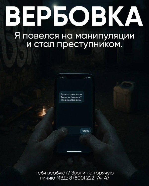 Вербовщики работают по шаблону: сначала дружба и похвала, потом — «проверочные» задания и давление Если чувствуешь манипуляцию — прерви общение, сфотографируй переписку и сообщи в полицию или родителям.