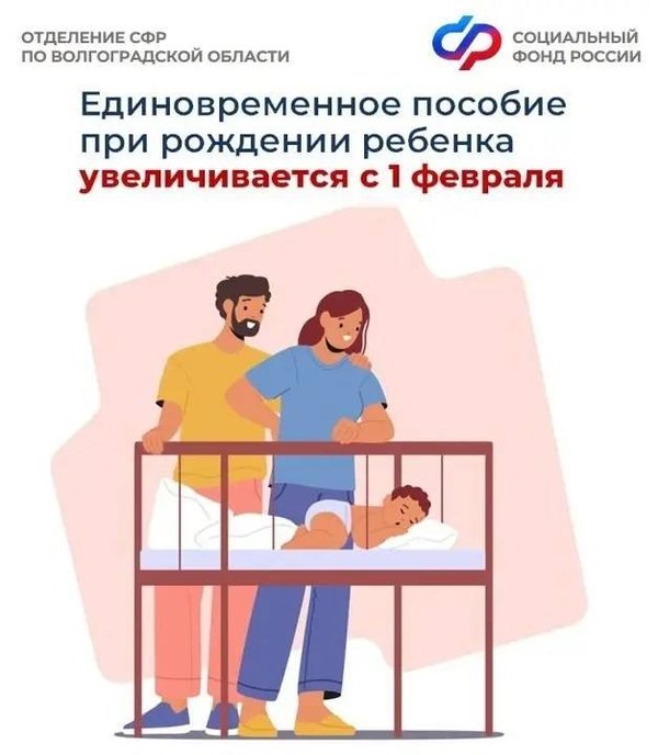 Почти 28,5 тысяч рублей составит единовременное пособие при рождении ребенка, начиная с 1 февраля после индексации пособий и выплат Соцфонда России. ️ Это лишь одна из множества мер поддержки семей, оказываемых Отделением СФР по Волгоградской области, в т.ч. в рамках нацпроекта «Семья». Это пособие получили 10 тысяч семей региона. ️ Выплата положена всем россиянам, ставших родителями, независимо от дохода и трудоустройства. Работающим пособие автоматически перечисляется через работодателя ️ Неработающие могут подать заявление в региональ… — Читать дальше