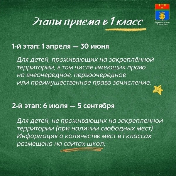 В Волгограде с 1 апреля стартует приемная кампания в первый класс в 2026 году. Каким образом родители будущих первоклассников могут подать заявление и какие документы потребуются подробнее в карточках. ▫Посмотреть, какие школы относятся к вам по прописке, можно здесь (). Проходите по ссылке, выбирайте свой район, а затем свой адрес и школу.