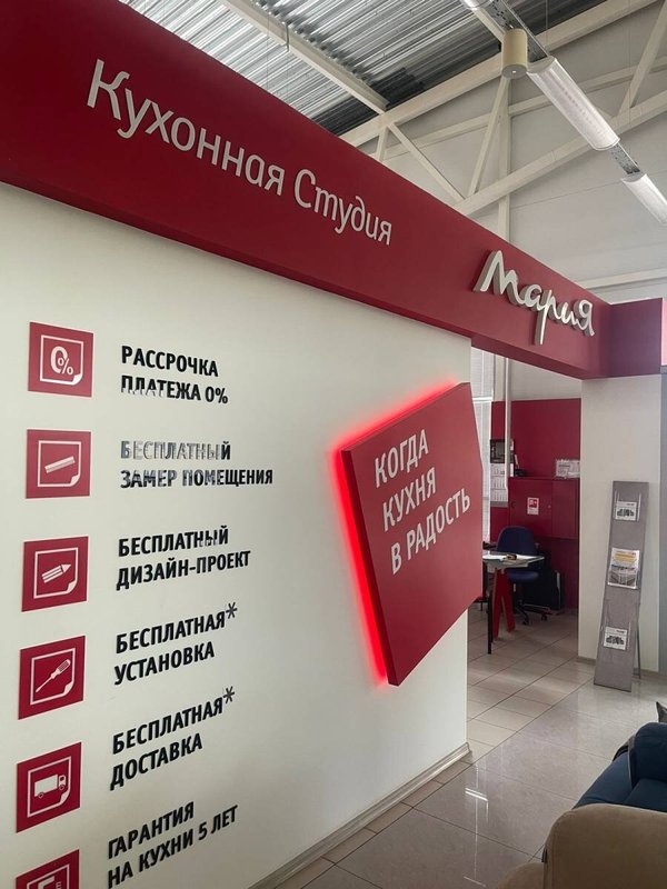 Компания «Мария» – один из ведущих производителей мебели в России. Здесь вы можете заказать кухню по индивидуальному проекту с полной комплектацией бытовой техникой плюс полный комплекс услуг: дизайн, доставка, установка, гарантийное обслуживание. Бесплатная разработка дизайн-проекта вашей будущей кухни и широкий ассортимент моделей в различных стилях сделают выбор кухни комфортным. Вы также можете приобрести мебель для ванной комнаты и шкафы и оформить интерьер вашего дома в едином стиле. А ежемесячные акции и подарки помогут сделать это очень выгодно. Посетите студию «Мария» – сделайте правильный выбор для вашего дома.