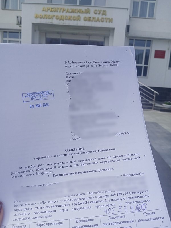 чка более 3 месяцев нет возможности платить В данном случае: долг 1,3 млн ₽ просрочка 4 месяца отсутствует стабильный доход Формально основания для банкротства есть. 2️⃣ Что могут забрать? Если имущества действительно нет, процедура обычно проходит спокойно. Не заберут: единственное жильë. обычные бытовые вещи личные вещи прожиточный минимум дохода Могут проверить: сделки за последние 3 года переводы родственникам продажу имущества «по заниженной цене» Если ничего не скрывалось — риски минимальные. 3️⃣ Что будет с коллекторами? После принятия заявления арбитражным судом: начисление процентов прекращается исполнительные производства приостанавливаются коллекторы обязаны прекратить давление Дело рассматривает арбитражный суд по месту жительства. Например, если человек живёт в Вологде — это будет Арбитражный суд города Вологды. 4️⃣ Какие последствия? После завершения процедуры: долги списываются, 5 лет нужно сообщать банкам о факте банкротства при получении кредита, 3 года нельзя быть директором ООО. Важно: кредитная история ухудшается, но она и так уже испорчена при просрочках. Вывод по ситуации Если: доход нестабильный платить нечем имущества нет Банкротство — законный способ полностью списать долги. Но перед подачей важно: не совершать подозрительных сделок, не брать новые кредиты, проконсультироваться со специалистом. Запишитесь на консультацию, если не справляетесь с платежами.
