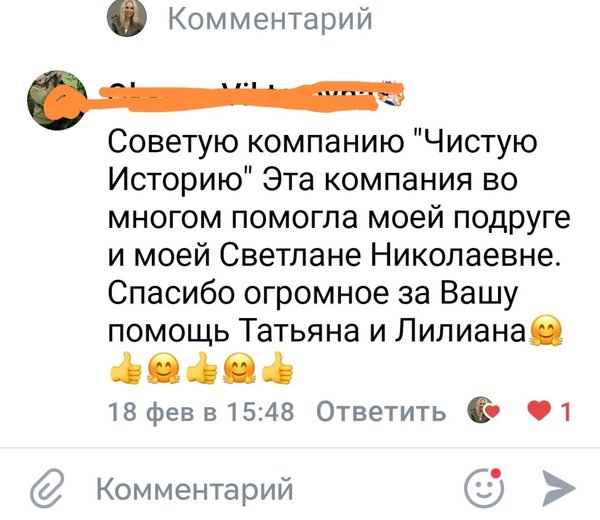 еживаний; а будущее выглядит ясным и стабильным. Желаем вам финансового обновления, внутреннего спокойствия и уверенности в завтрашнем дне. Спасибо, что вы с нами — вместе мы делаем шаг к жизни без долгов и с новыми перспективами! С теплом и поддержкой, Ваша команда Чистая История
