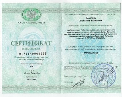 2013 — Северо-Западный государственный медицинский университет им. И.И. Мечникова (ортодонтия)