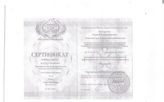 2017 — Удостоверение о повышении квалификации ИДПО ФГБОУ им. Н.Н. Бурденко по программе Ультразвуковая диагностика.