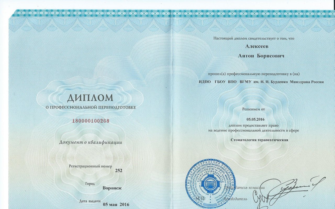 2014 — Воронежская государственная медицинская академия им. Н.Н. Бурденко (стоматология ортопедическая)
