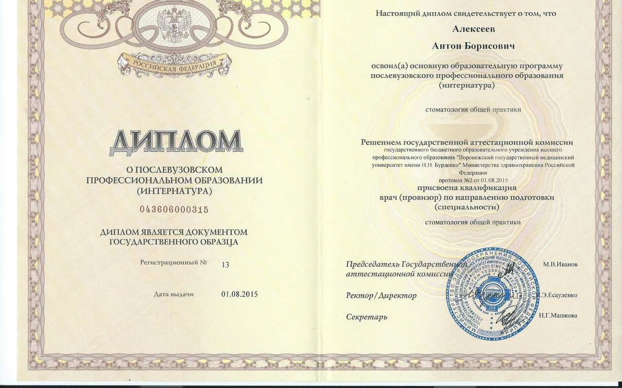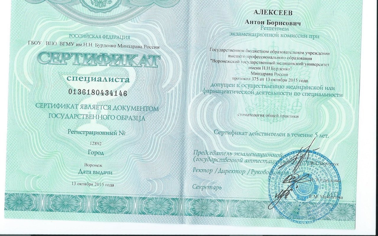 2015 — Воронежская государственная медицинская академия им. Н.Н. Бурденко (стоматология общей практики)