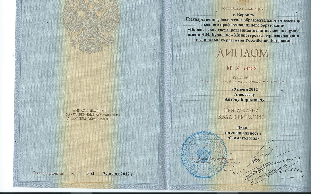 2012 — Воронежская государственная медицинская академия им. Н.Н. Бурденко (стоматология)